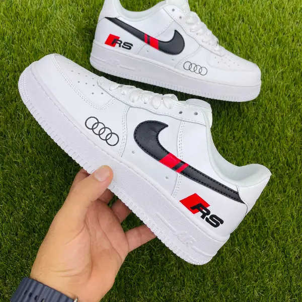 Step up your sneaker game with these hand-painted Audi RS Custom Nike Air Force 1 sneakers by JadoreArt. Inspired by the power and elegance of Audi’s RS series, these one-of-a-kind shoes combine premium streetwear style with motorsport passion.