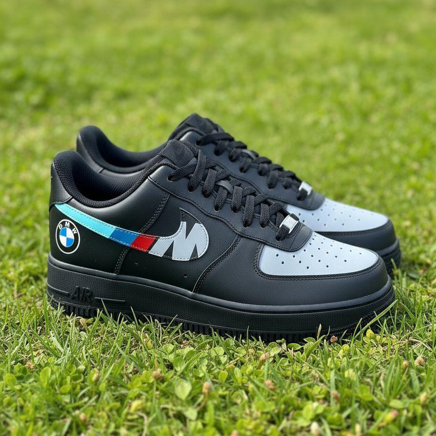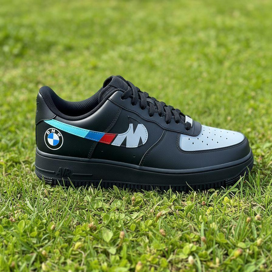 Unleash your passion for performance with these exclusive custom BMW Motorsport Nike Air Force 1s. Designed for the ultimate car enthusiast, this pair of hand-painted sneakers features the iconic BMW logo and M-Performance stripes on a sleek black and white base. The meticulous details and vibrant colors are crafted using professional-grade leather paint to ensure a durable, long-lasting finish that won't chip or fade. Perfect for cruising on the street or showing off your unique style, these black custom sneakers are a true statement piece. Every pair is made with precision and care, making them the perfect handmade gift for any fan of German engineering and luxury automotive style.